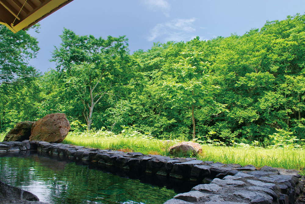 핫코다의 계절마다의 대자연을 가장 가까이에서 즐길 수 있고, 풍경과 탕의 사이에 경계가 없는 듯한, [대자연 속에서의 입욕]을 즐기는 것이 가능합니다. 별이 총총한 하늘을 바라보면서의 입욕이나, 온통 하얀 눈의 세계에서의 입욕은 마음과 몸을 치유하고, 비일상적인 공간을 즐길 수 있습니다. 당일치기 입욕도 가능합니다. 전면 유리의 대욕실에는, 거품목욕, 미스트사우나 등도 설치되어 있습니다.